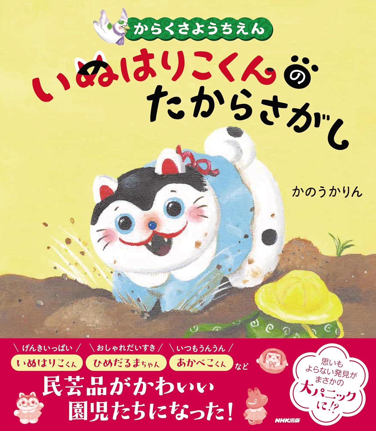 今回、私が紹介させていただく本は、「かなしきデブ猫ちゃん」や「どろぼうねこ」シリーズでおなじみの絵本作家、かのうかりんさんの最新刊「からくさようちえん いぬはりこくんのたからさがし」です。1月23日にNHK出版より発売されました。