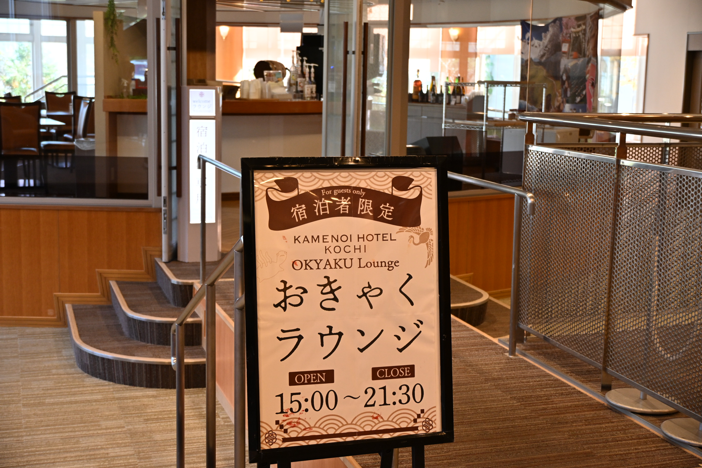 今回はいの町にある「亀の井ホテル 高知」です。宿泊客が利用できる“おきゃくラウンジ”は必見ですよ。