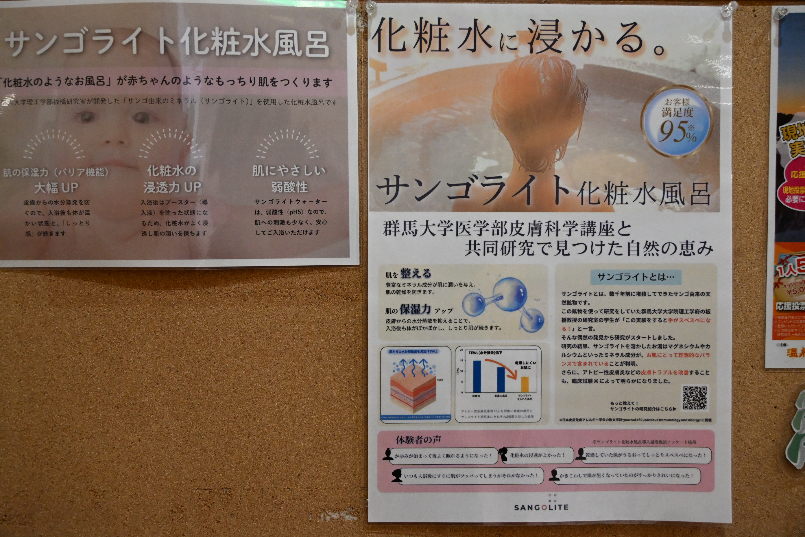 『天然温泉と珍しいサンゴライト化粧水風呂も楽しめる』