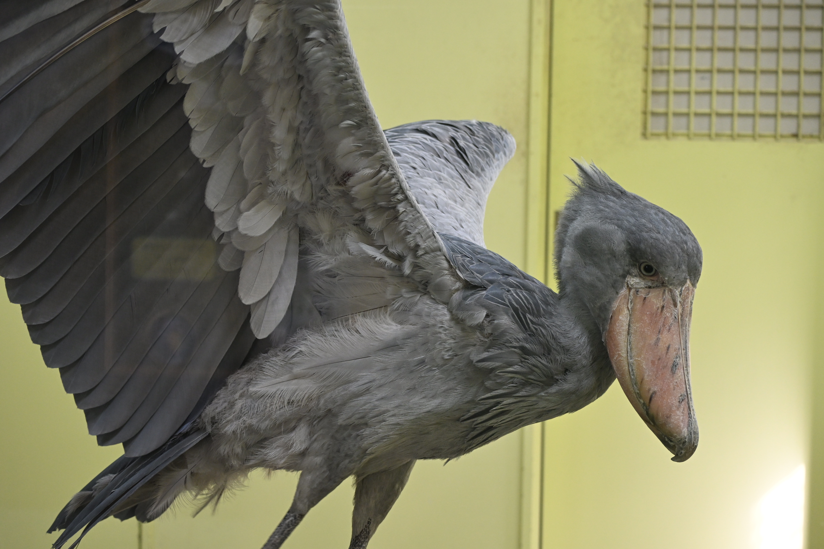 絶滅危惧種に指定されていて、ハシビロコウが見られる動物園は国内に6つしかありません。