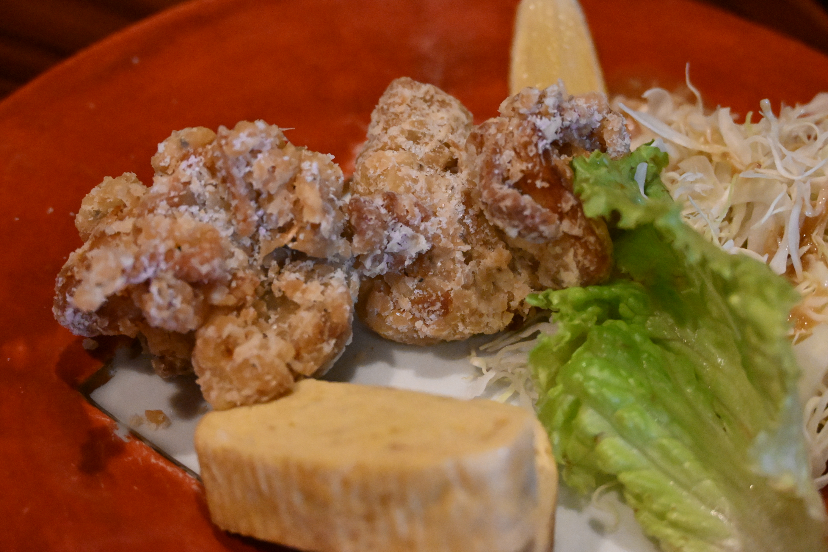 外側はサクっ!中はしっとり、あっさりめの味付けのからあげが2個にご飯もついた満腹セット。