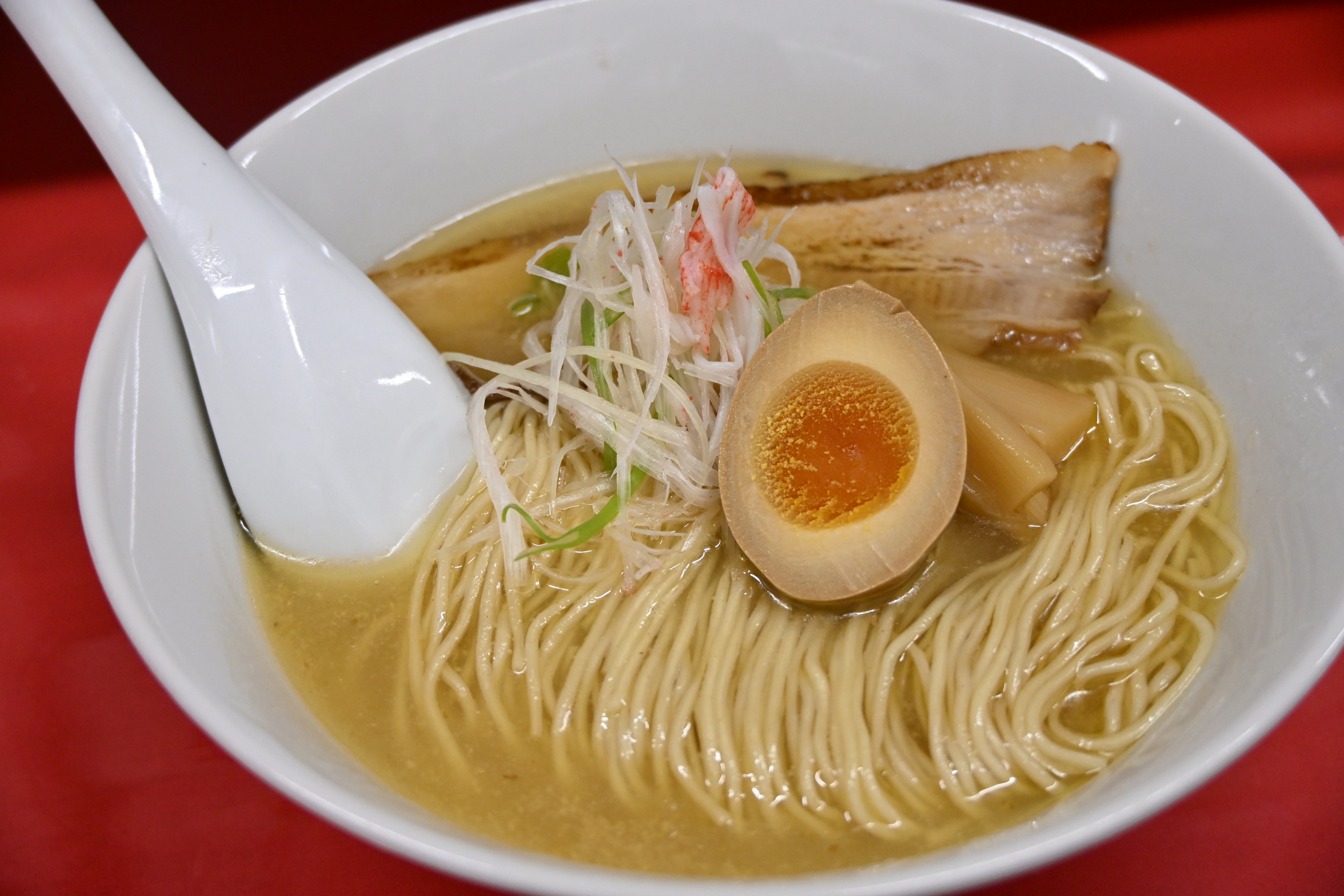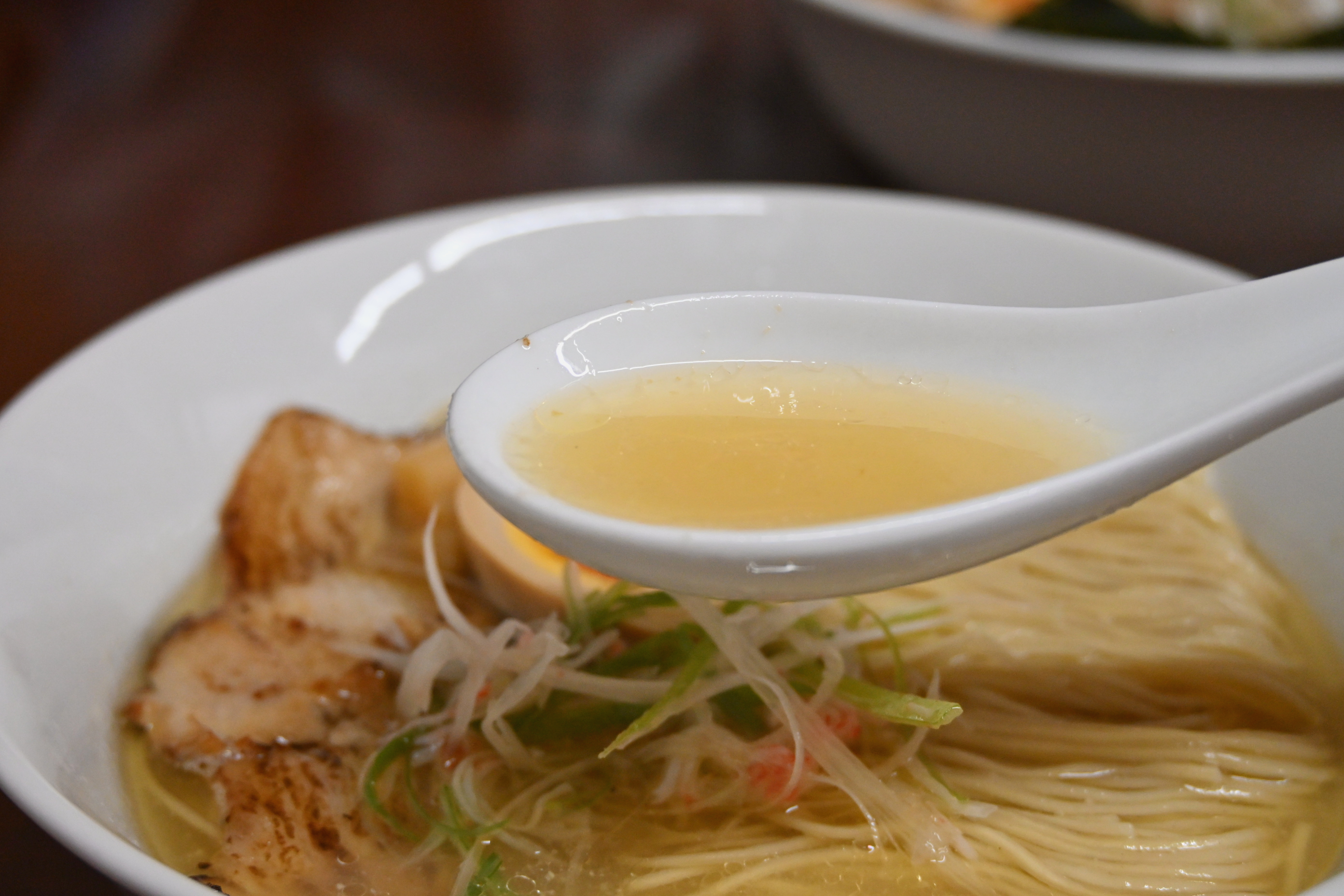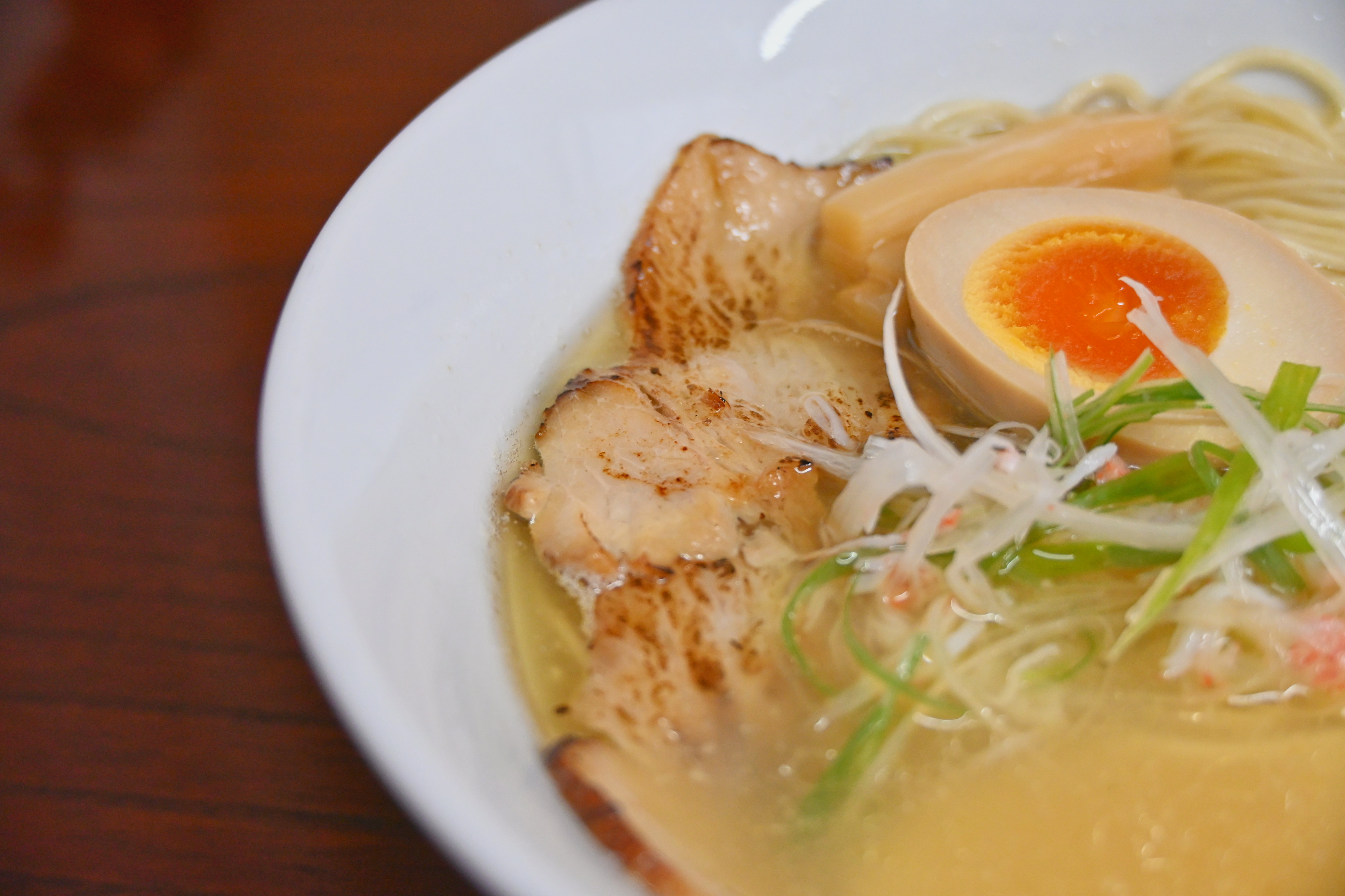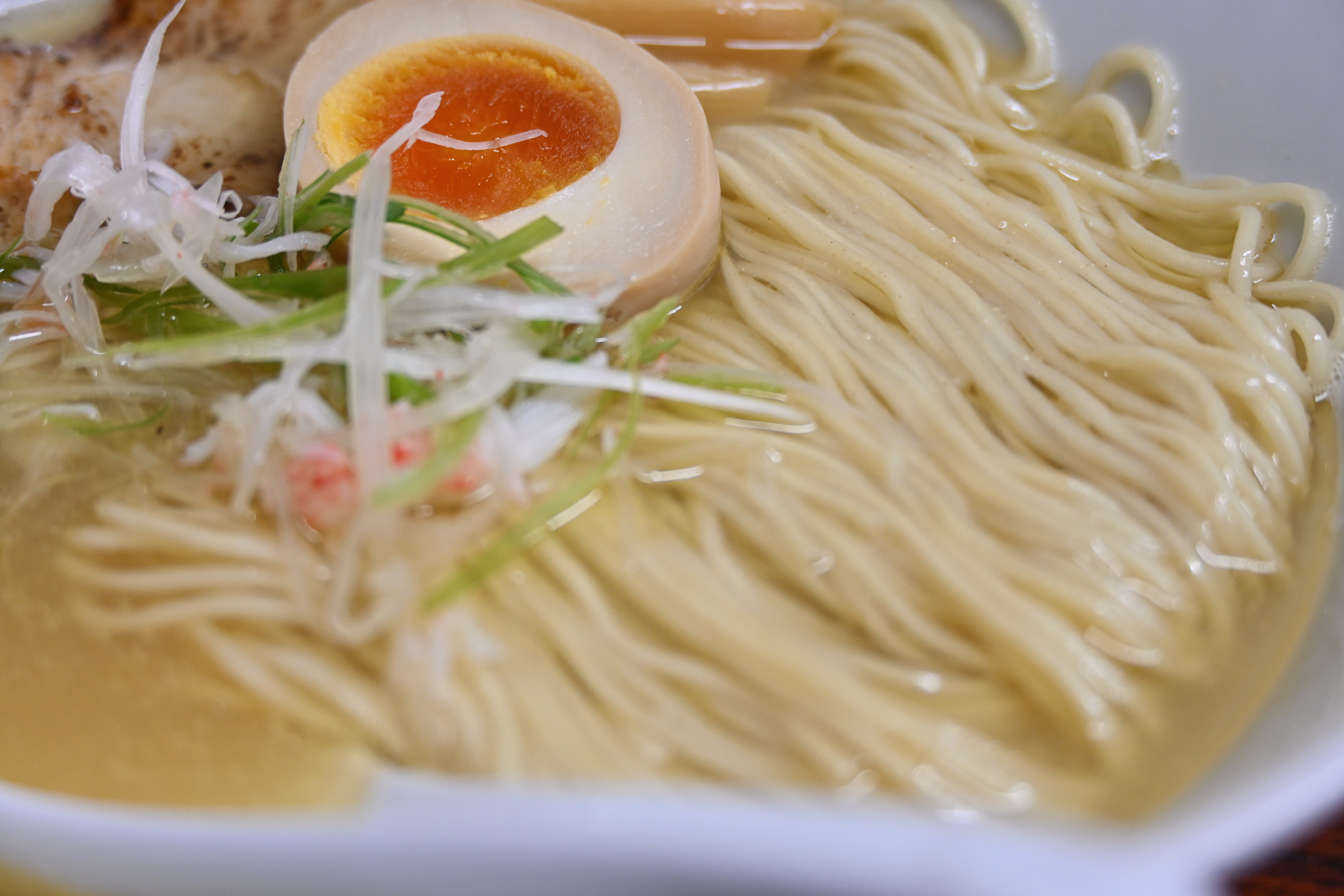キリっとした塩ベースのスープに鶏油の旨味と甘みを感じる奥深い旨さ!バターが入っているのでコクもしっかりと感じます。そしてジューシーな炙りチャーシューが加わって香ばしさも楽しめる一杯。