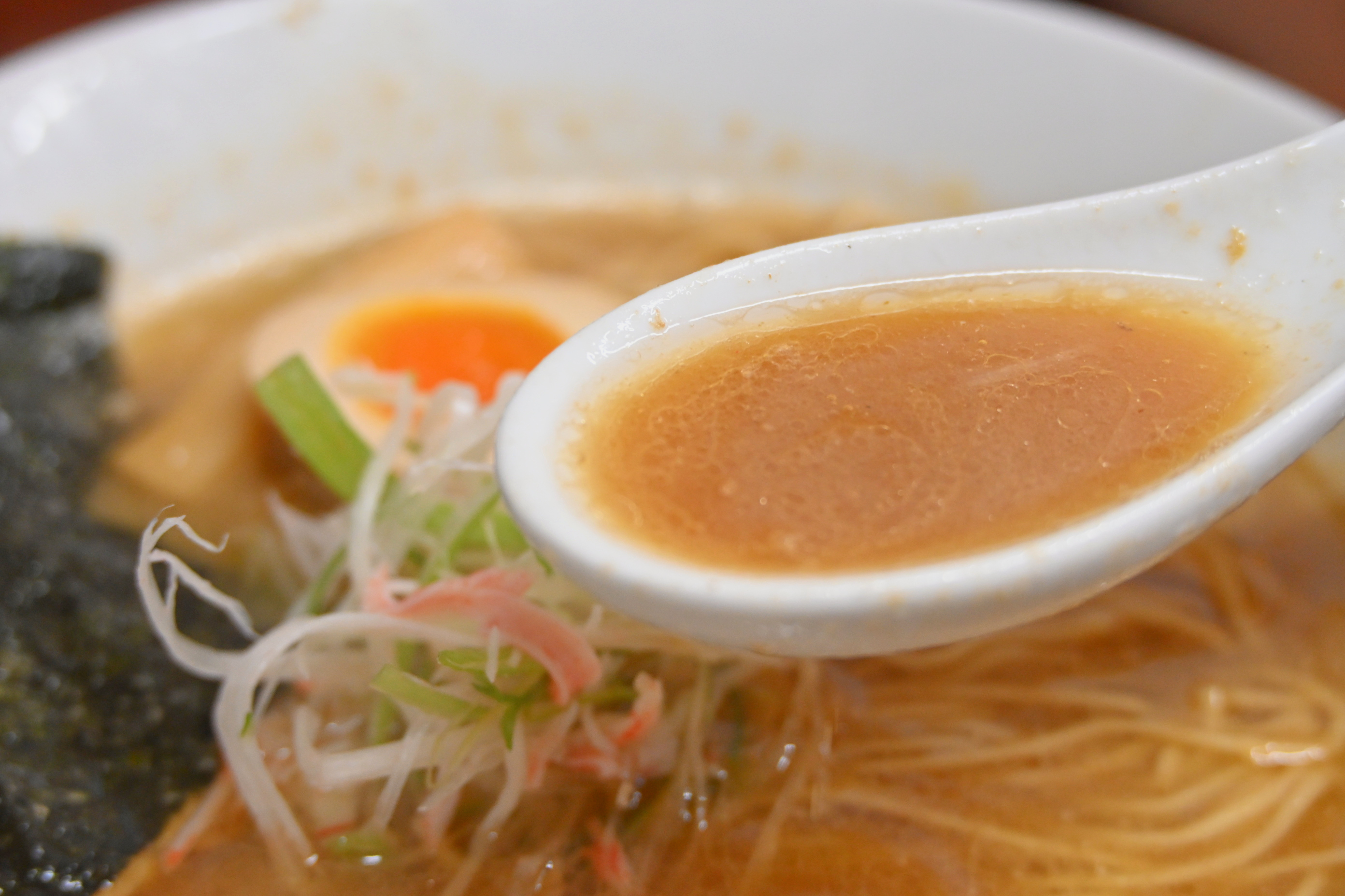 豚骨の旨みと香ばしい醤油風味が楽しめる一品。濃厚な見た目とは裏腹に、後味は思った以上にスッキリ!