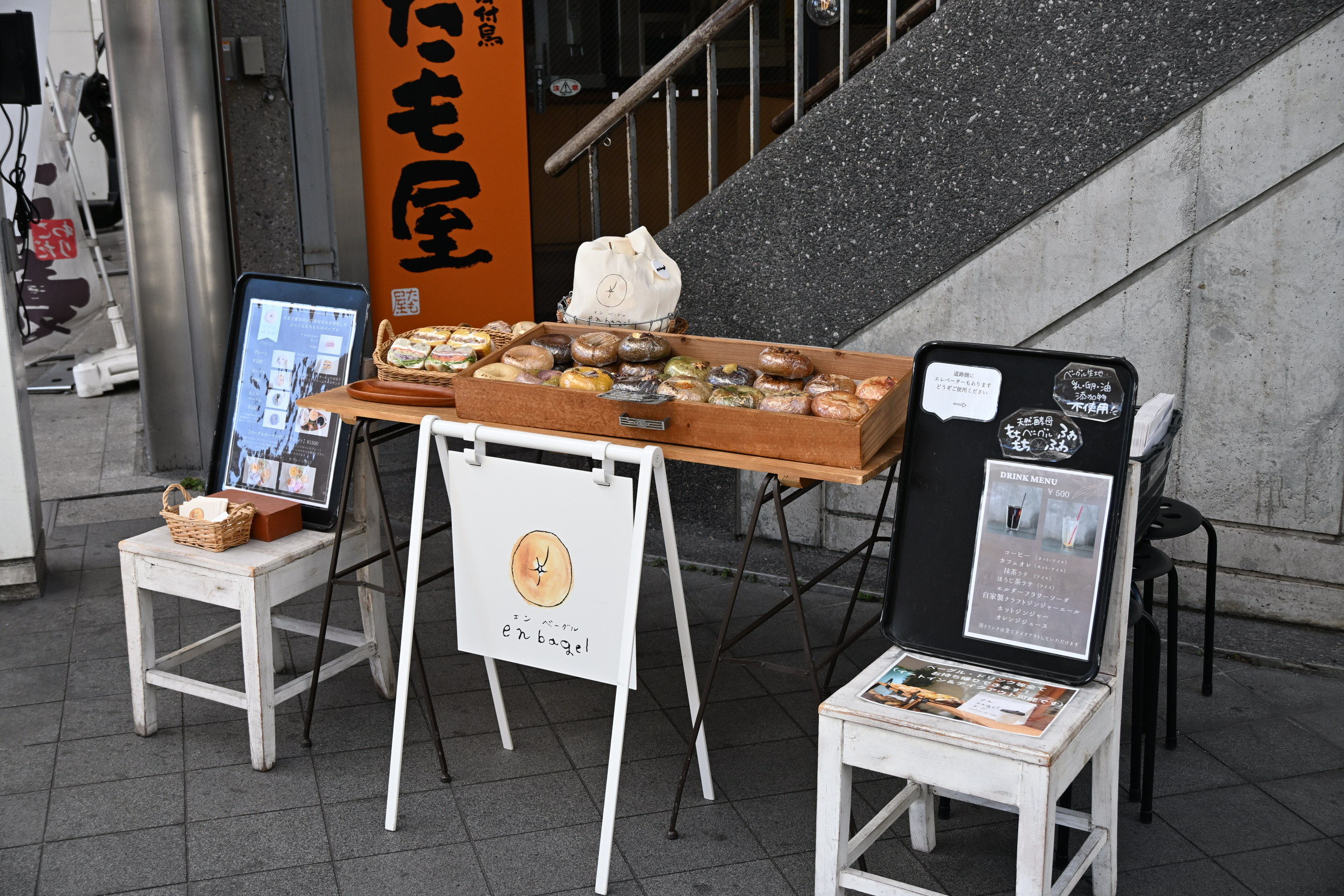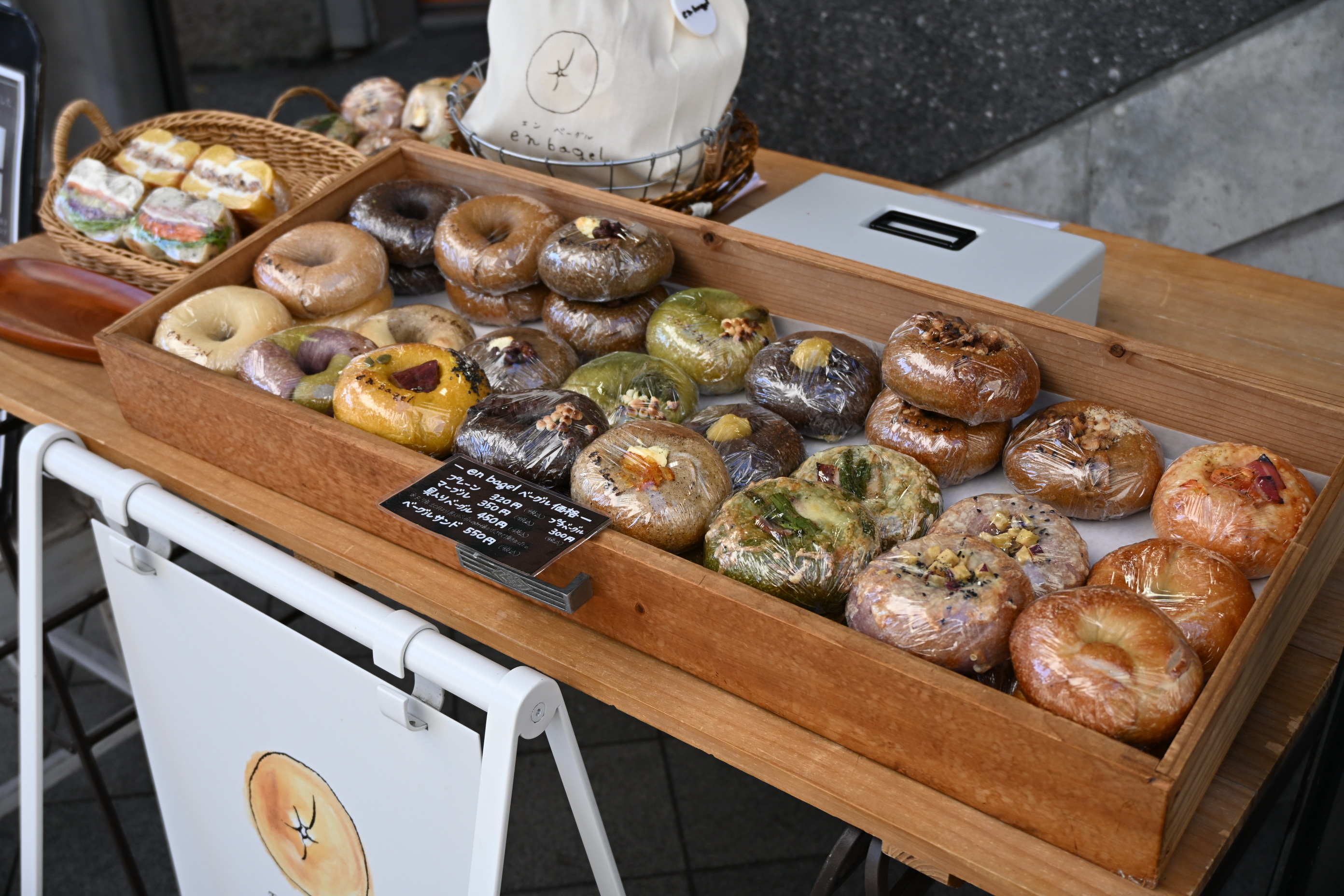 ランチタイムのあとには、店舗の外でもベーグルを販売しているそうです。