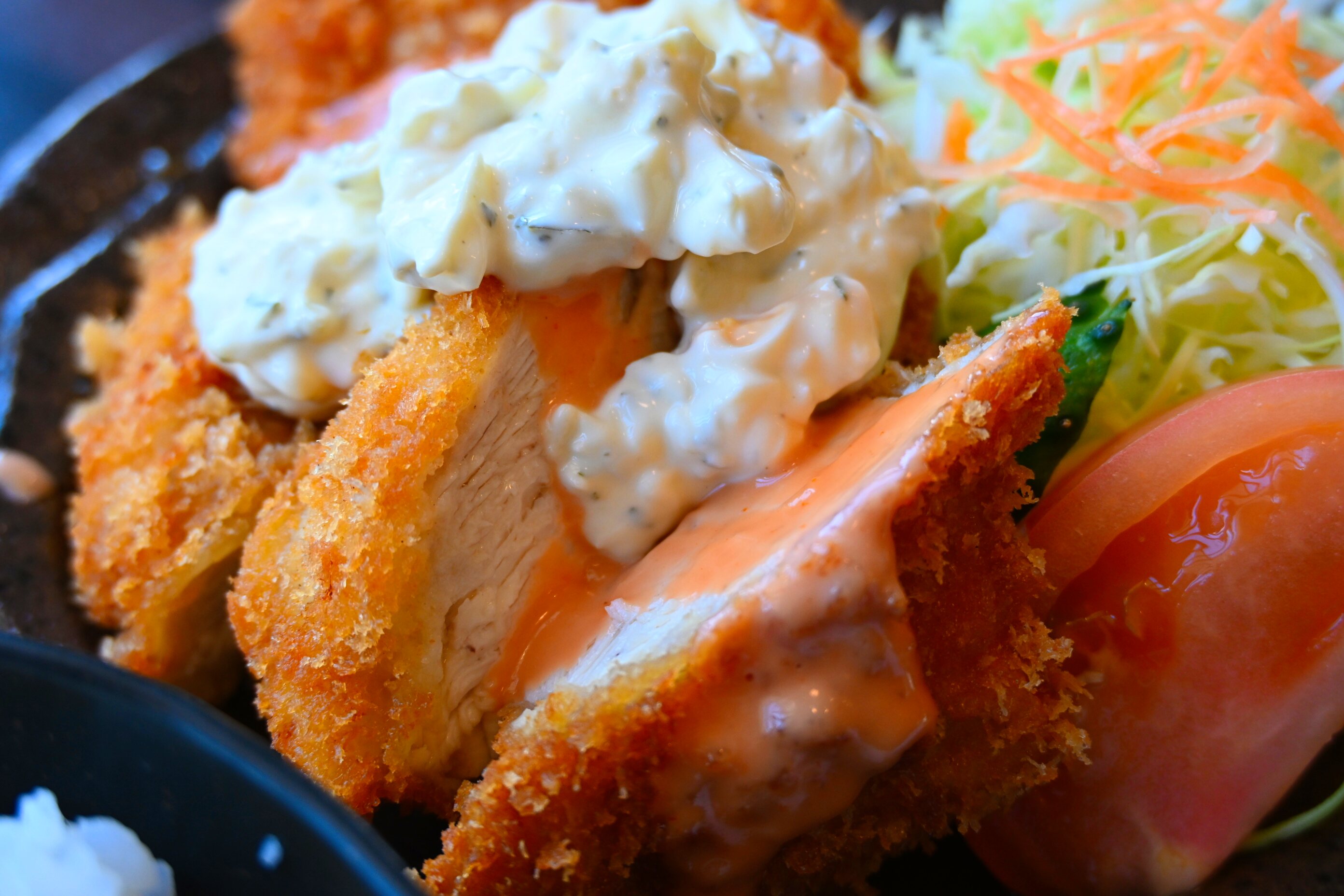 一般的に「チキン南蛮」と言えば揚げた鶏肉を甘酢に浸して、仕上げにタルタルソースをかけた宮崎県発祥の郷土料理ですが、高知で「ナンバン」というと揚げた鶏肉+オーロラソースがお馴染み。