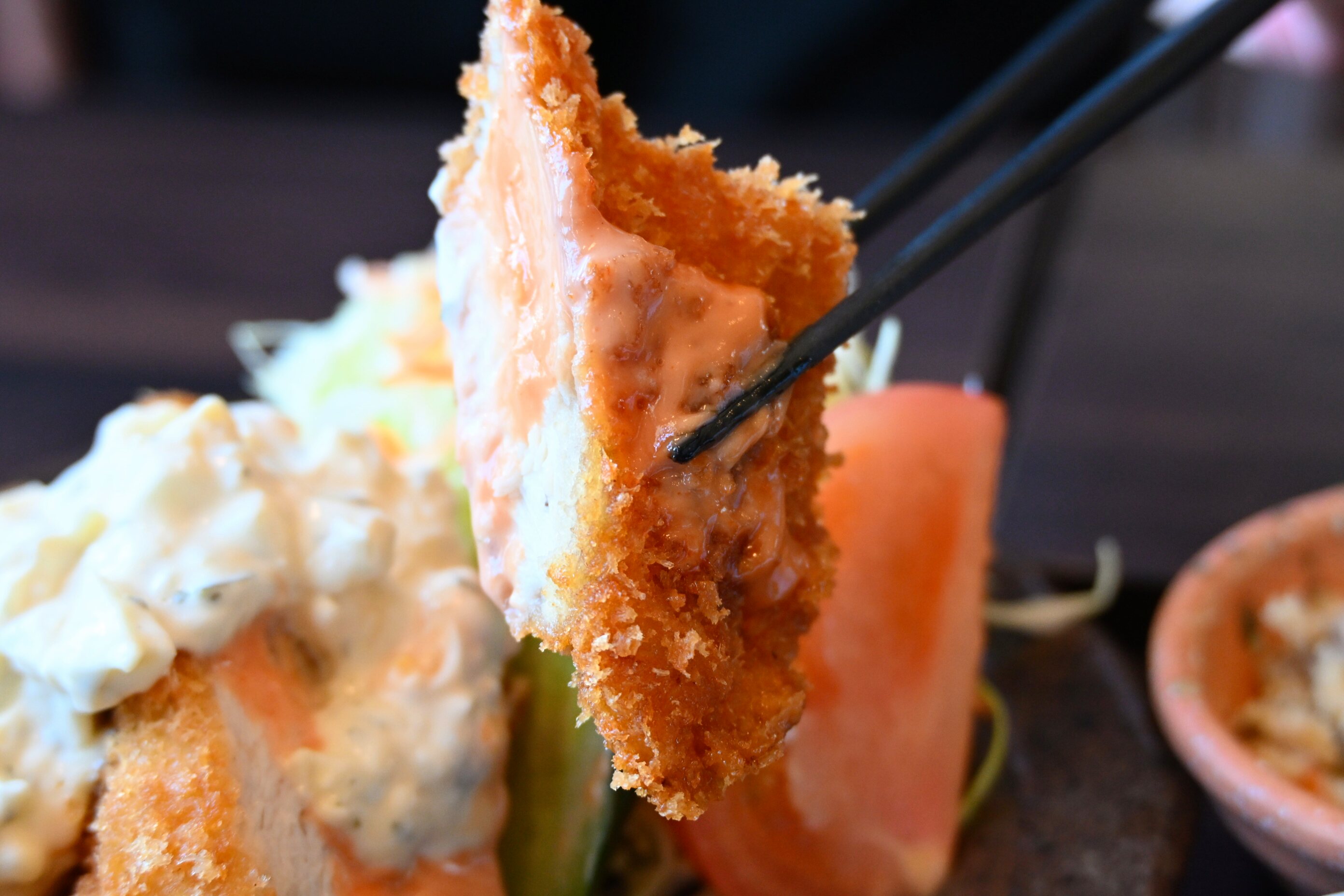 胸肉を使っているので、外はサックリ、中はしっとりとした食感。甘めのオーロラソースは子どもも喜ぶ味!