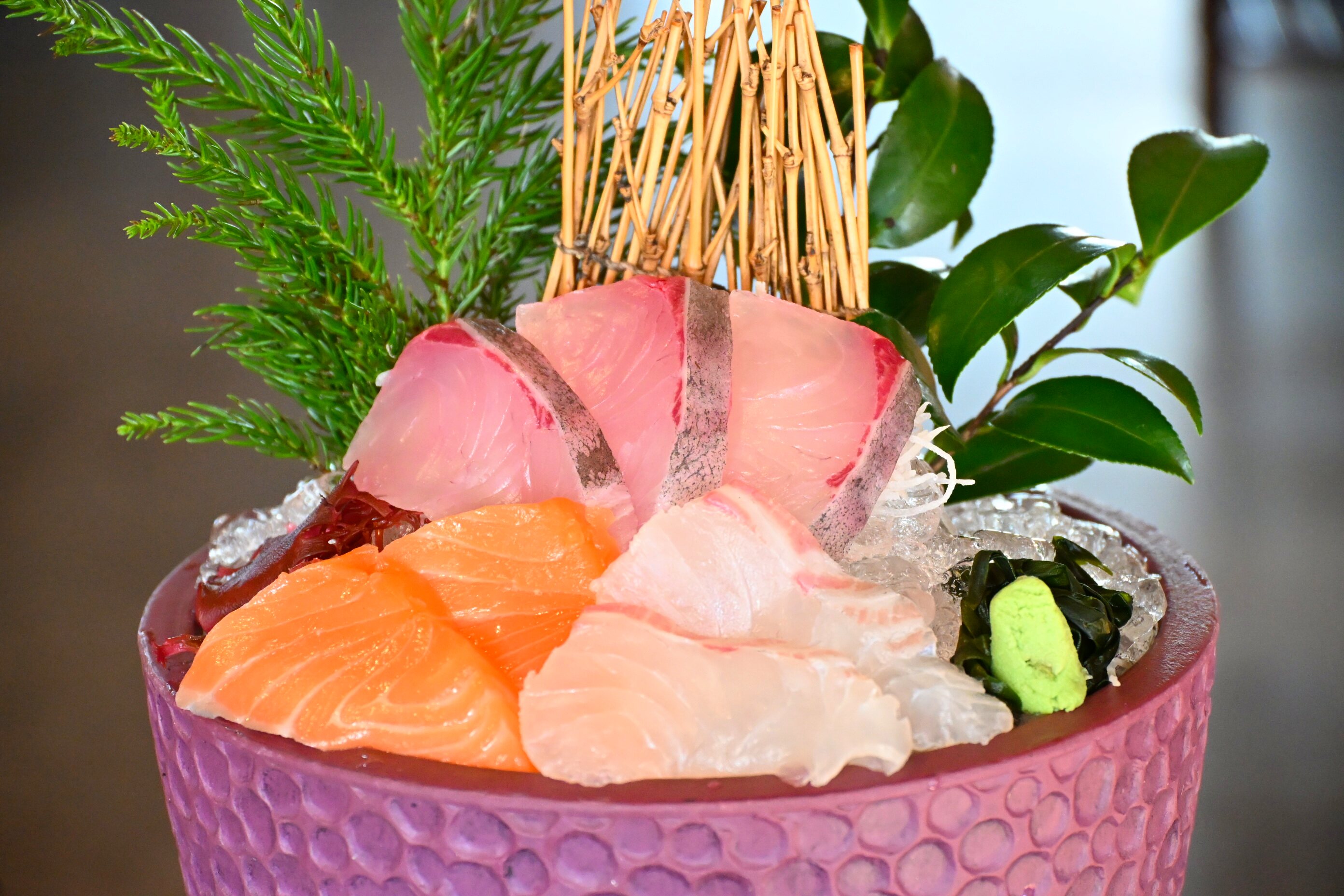 刺身は3種類。取材日は「カンパチ・マダイ・サーモン」
