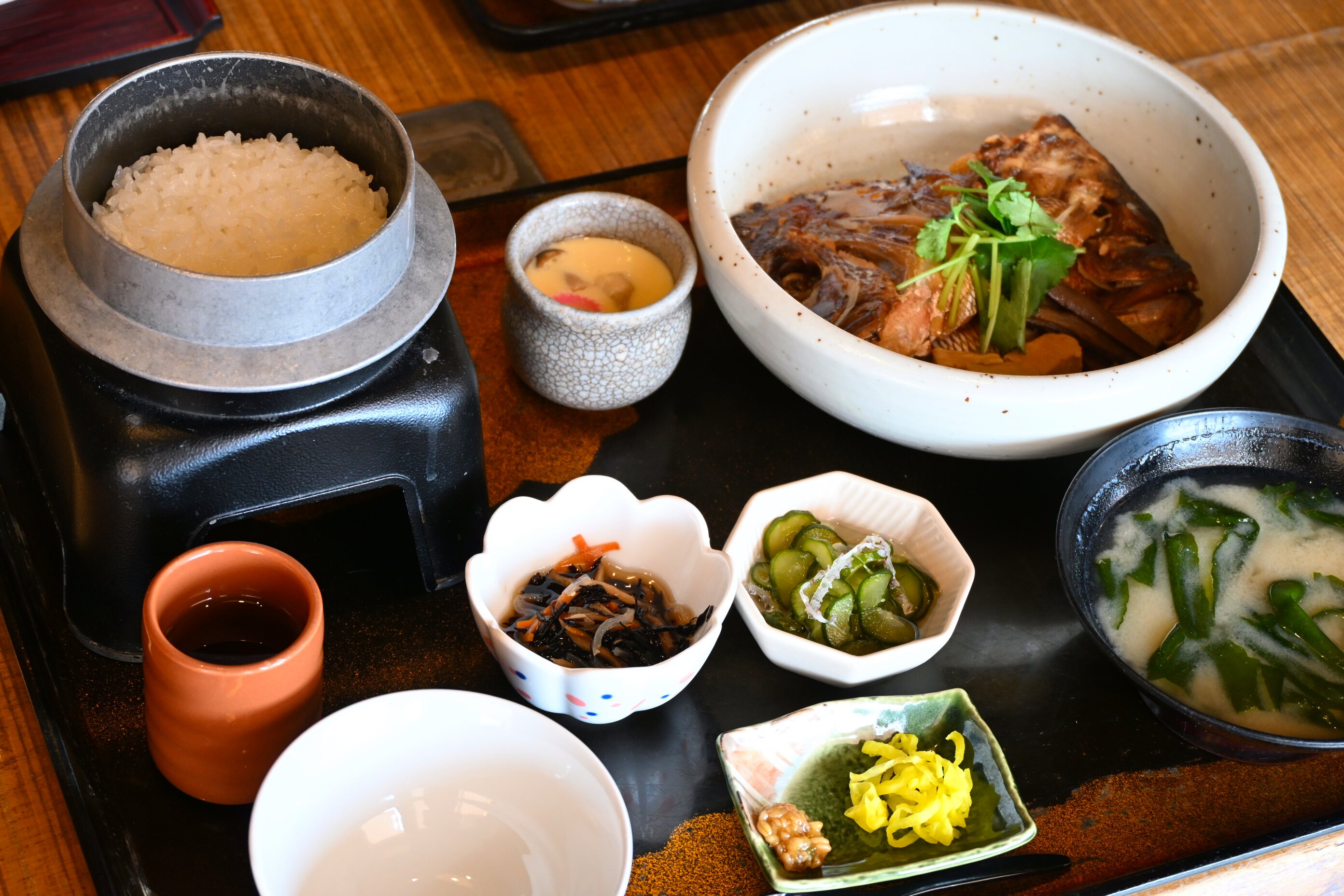 しかもお頭が2尾分!甘辛く煮付けられた味わいはまさにご飯泥棒。白ご飯との相性は言うまでもなく抜群でした。釜飯は+330円でおかわりできますよ。