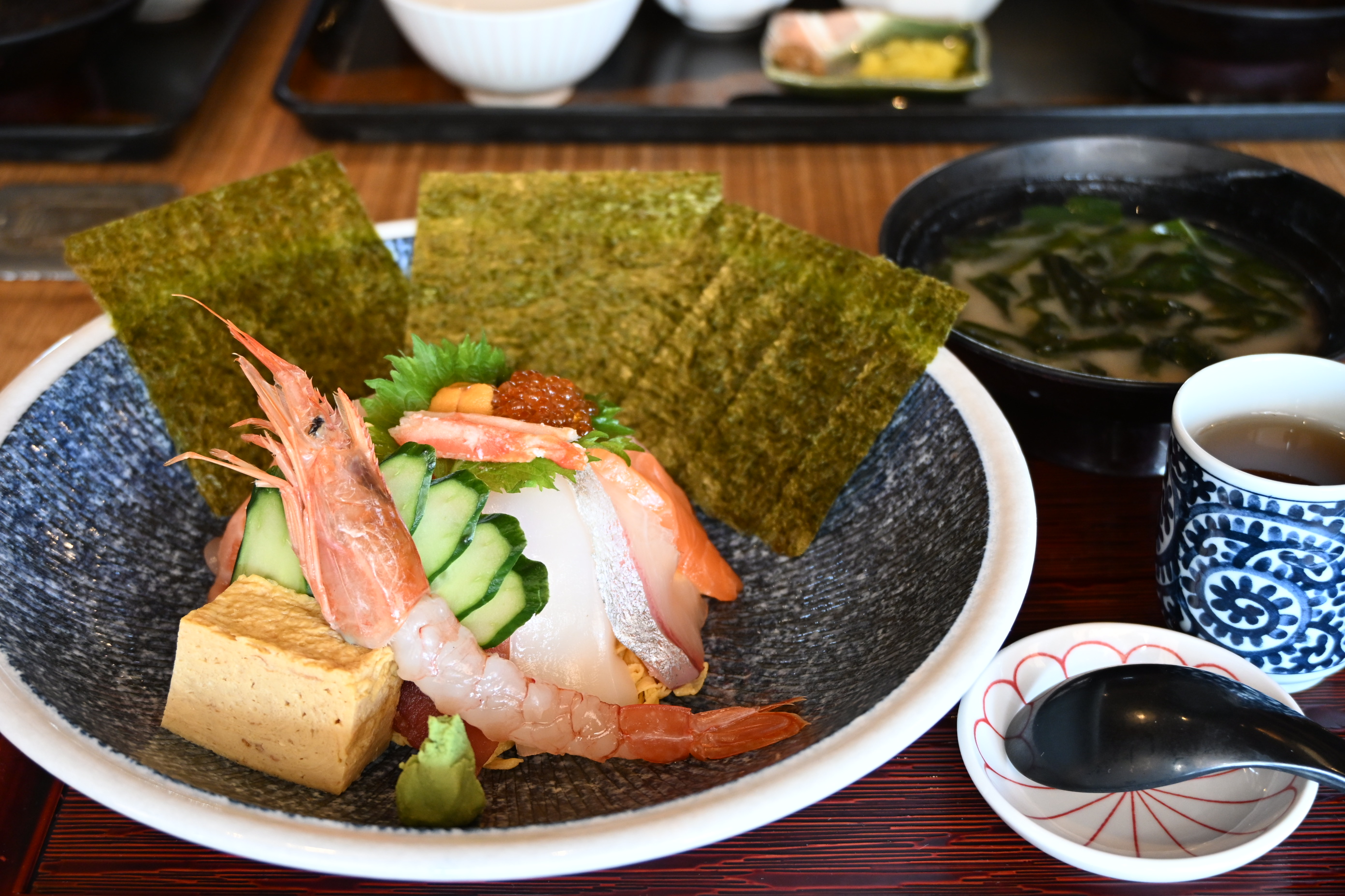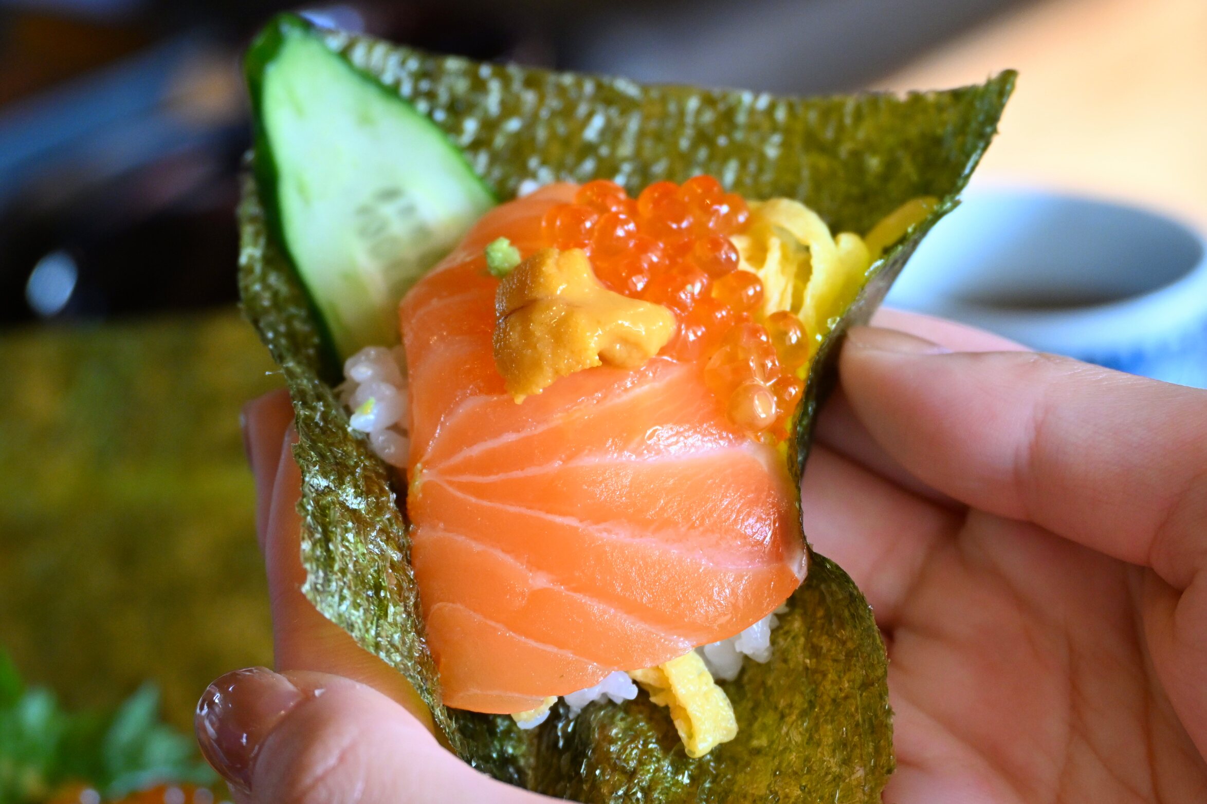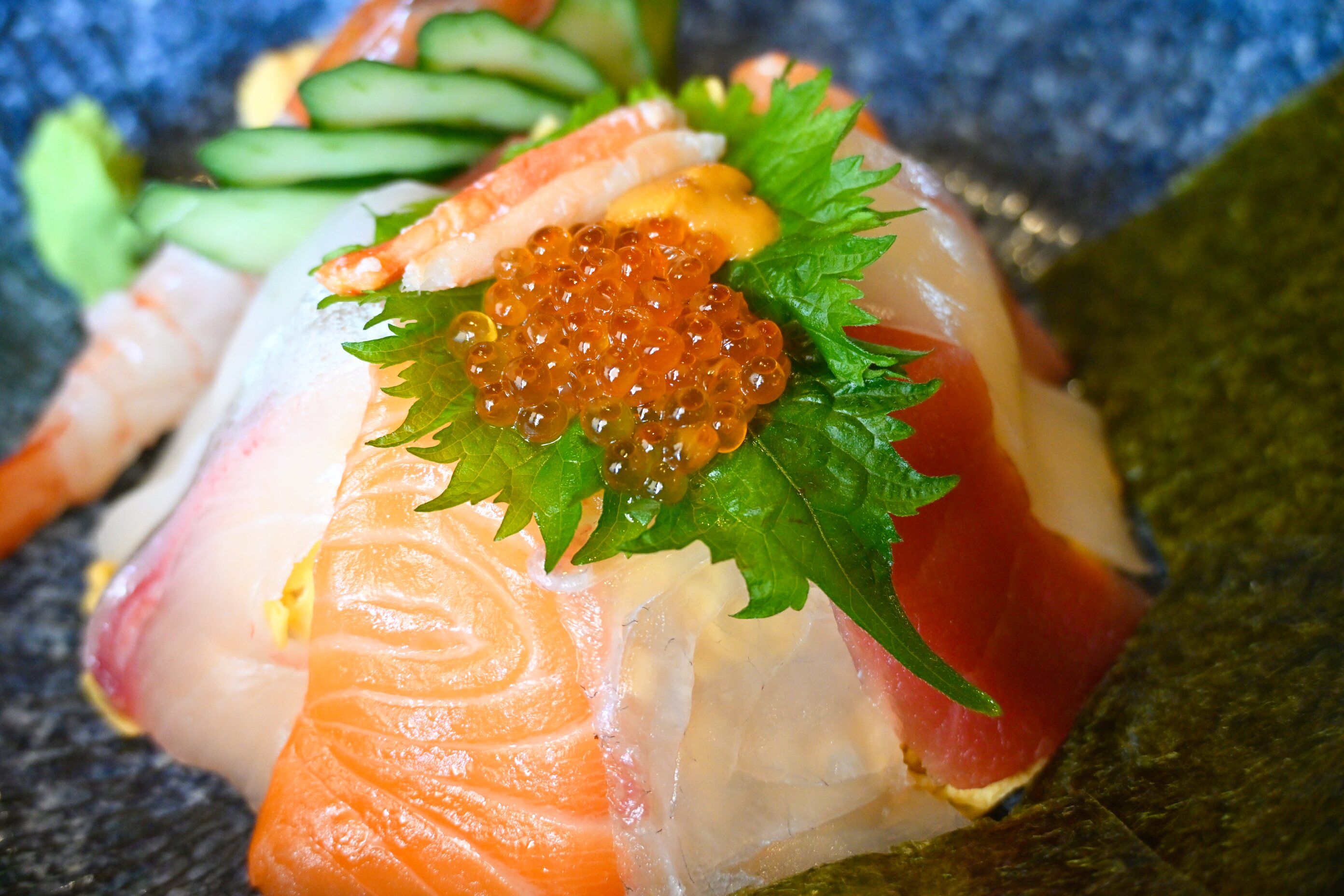 取材日は「カンパチ・マダイ・イカ・サーモン・アカエビ・カニ・マグロ・ウニ・イクラ・卵焼き」