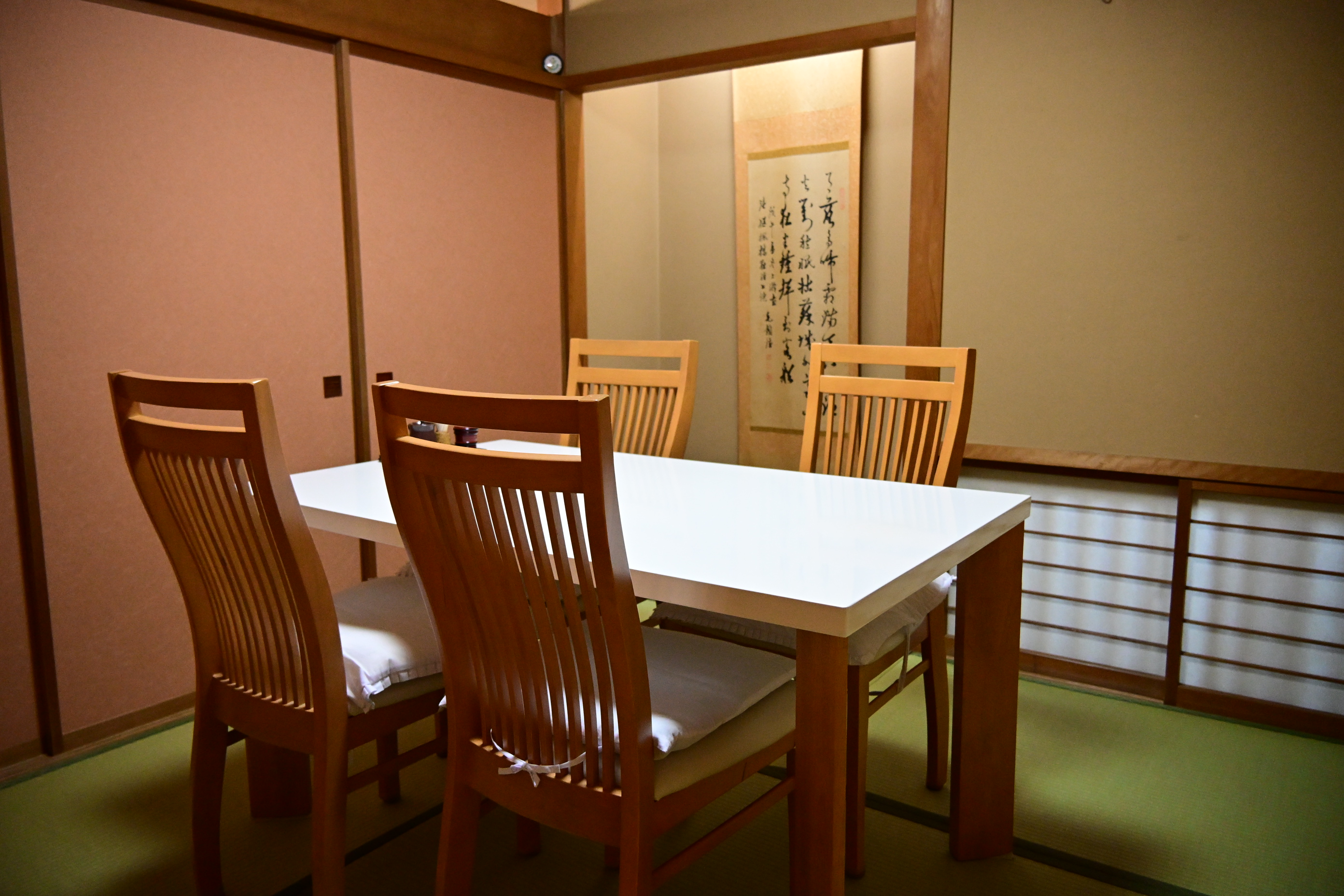 門をくぐり店内へ。1階部分は全5部屋で2部屋がテーブル席、3部屋が座敷席。2階は大広間になっていて、60名~70名の団体客に対応しているそうです。