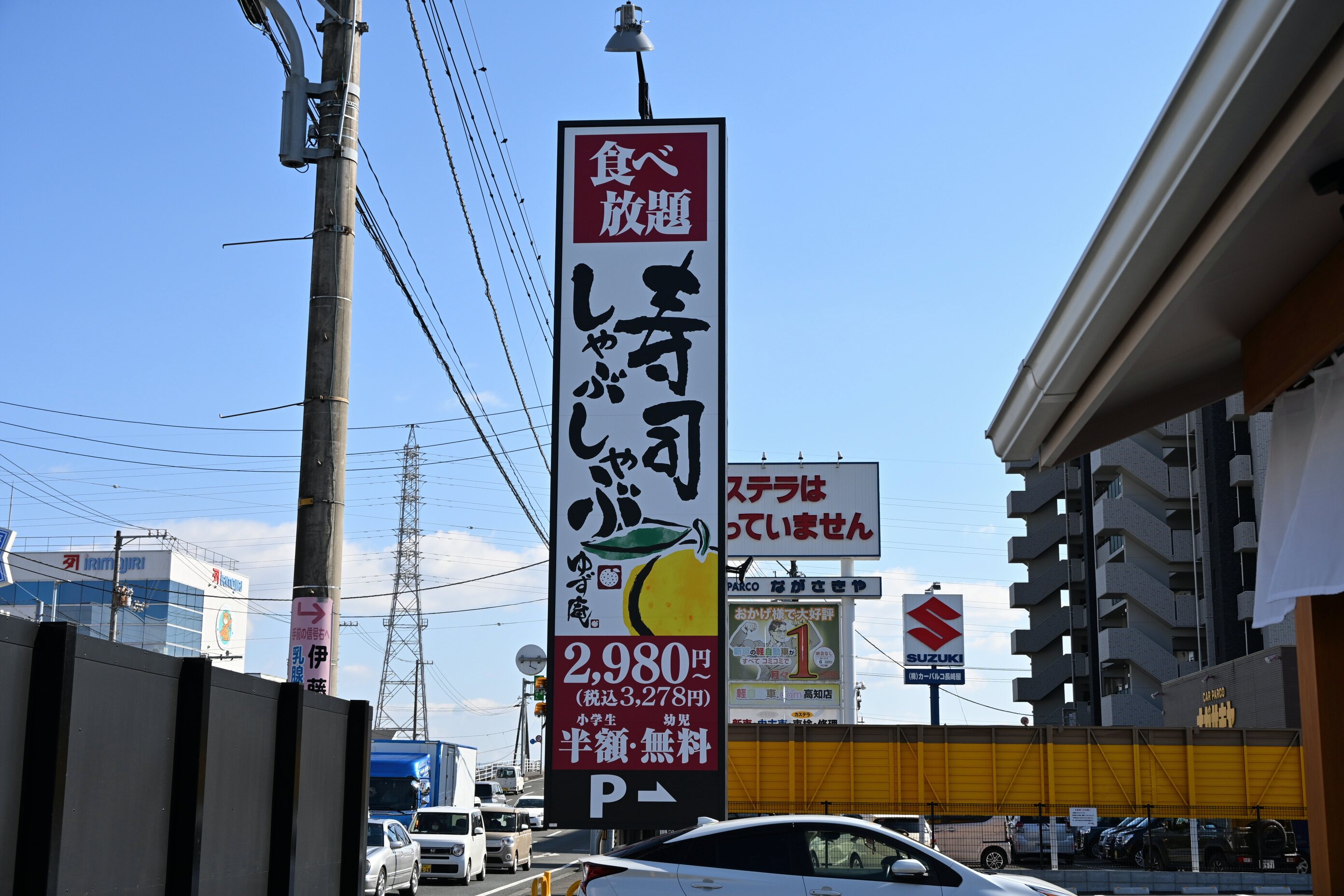 大きく「寿司・しゃぶしゃぶ専門店」の文字が。