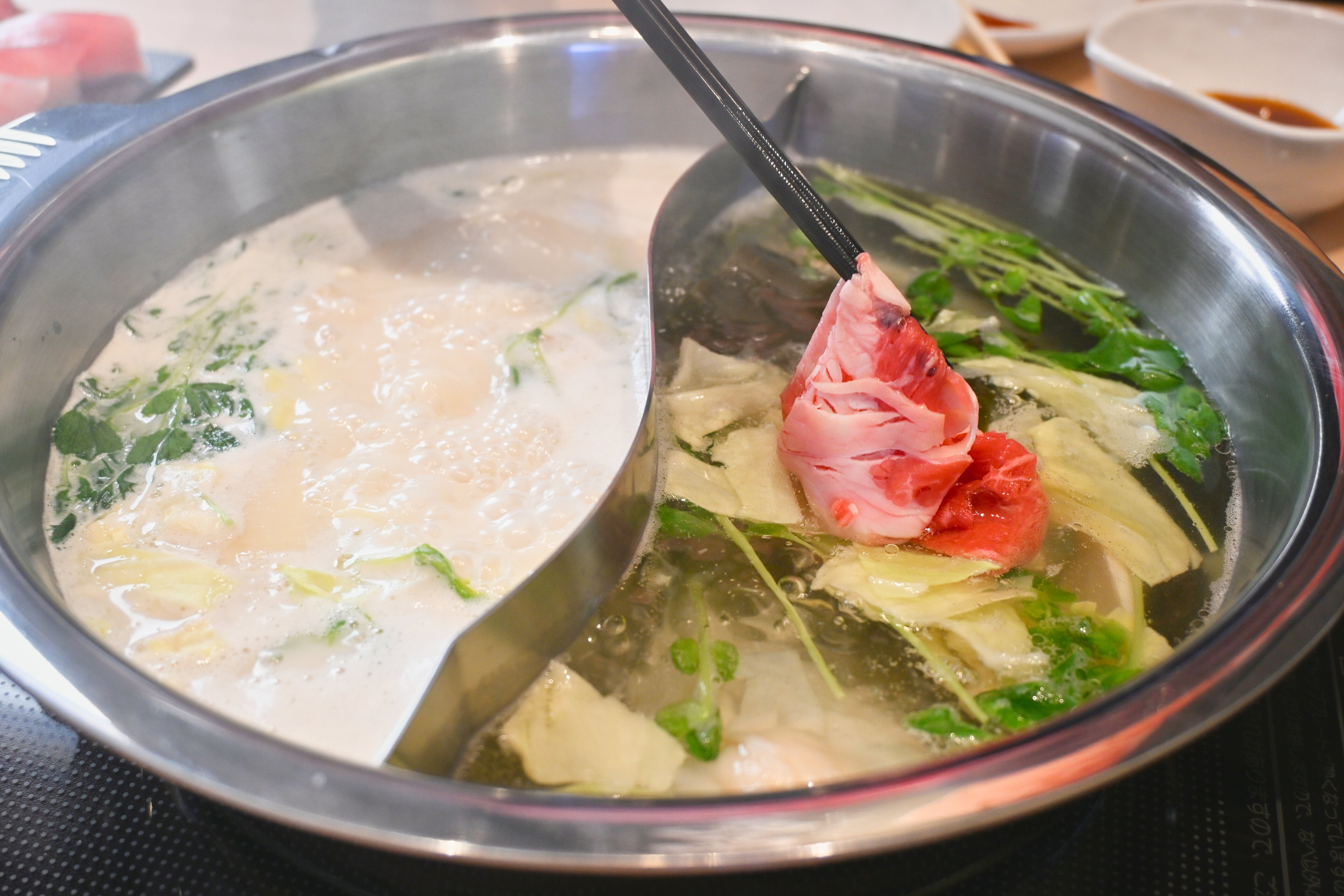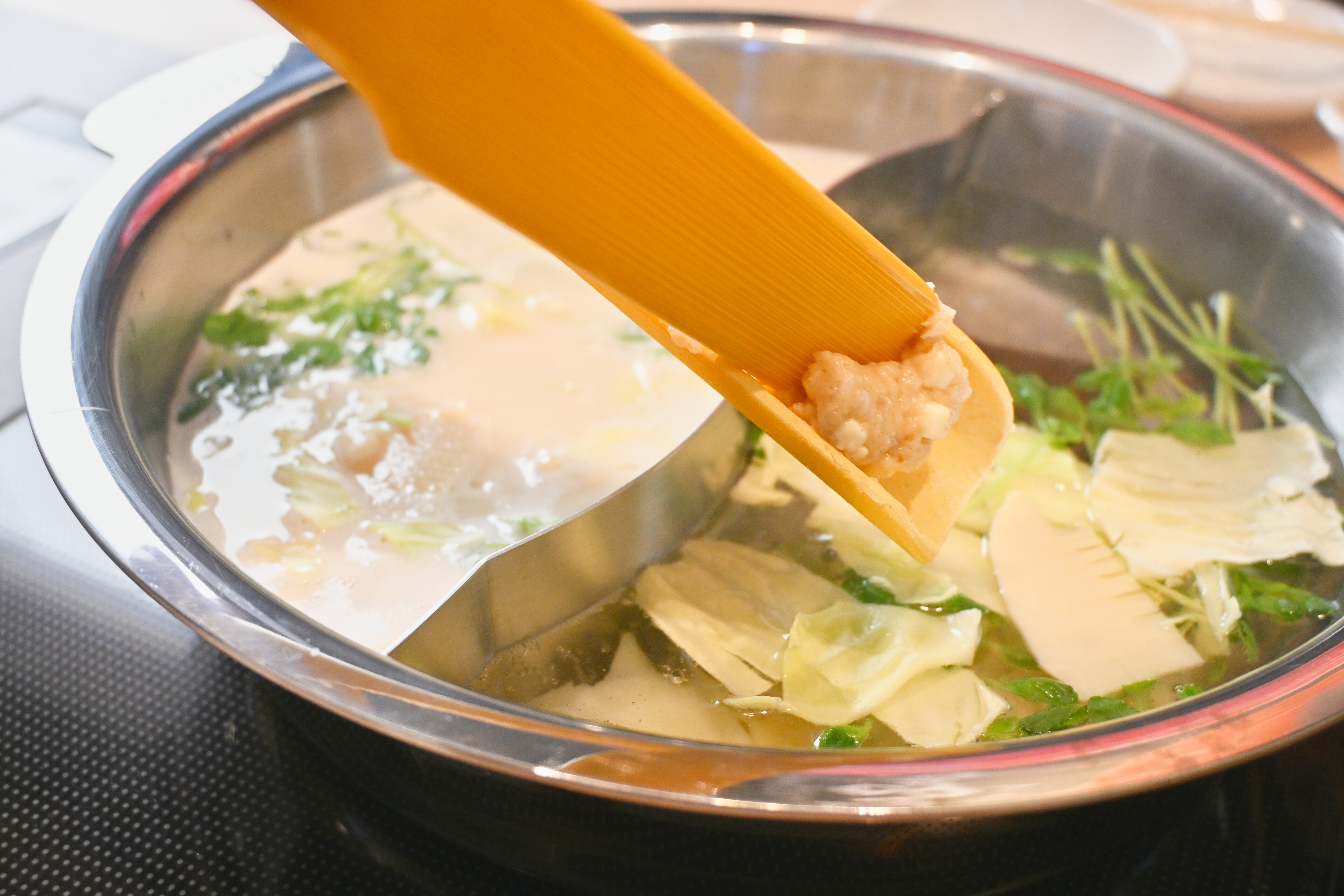 豆乳鍋だしは北海道産の昆布を使用した優しい風味。
