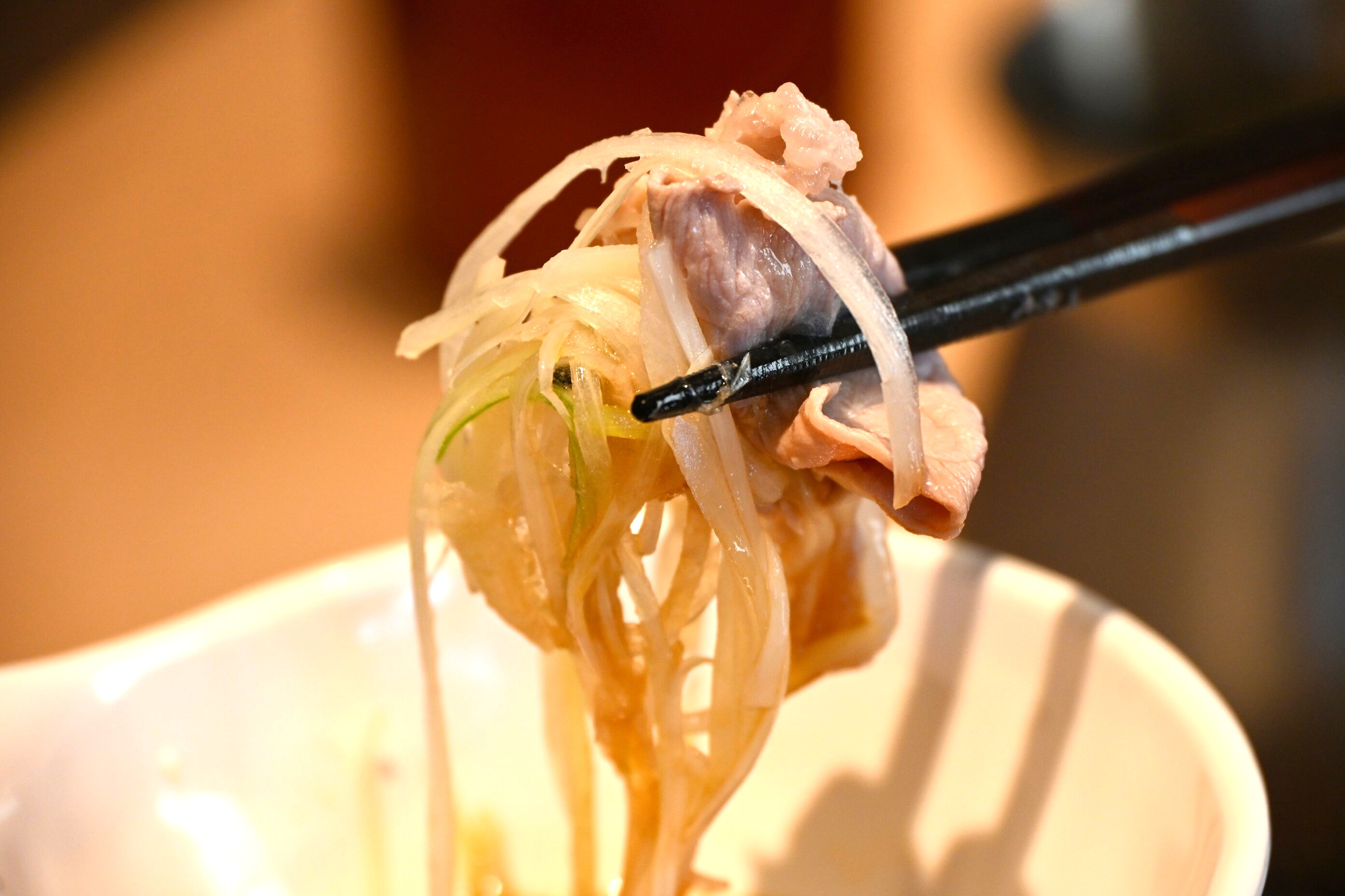 シャキシャキとした「ゆず葱」と柔らかいお肉、この2つの食感の楽しさに、だしのしっかりとした風味がハマる!これは丸絞りのユズをたっぷりと使用したポン酢とぜひ合わせて食べて欲しい逸品。