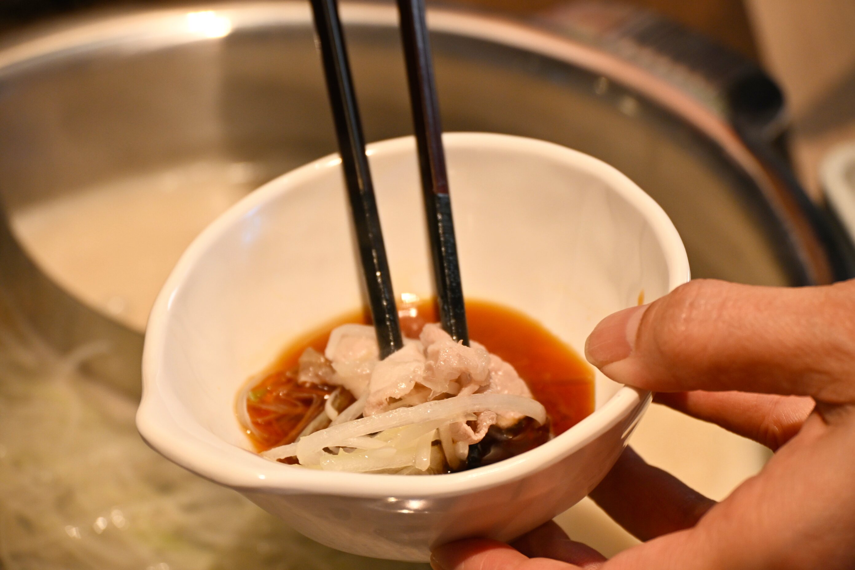 お店自慢のゆず庵昆布だしにくぐらせていただきます。ゆずの香り、風味、昆布の旨味がお肉にしっかりと乗って美味しい!
